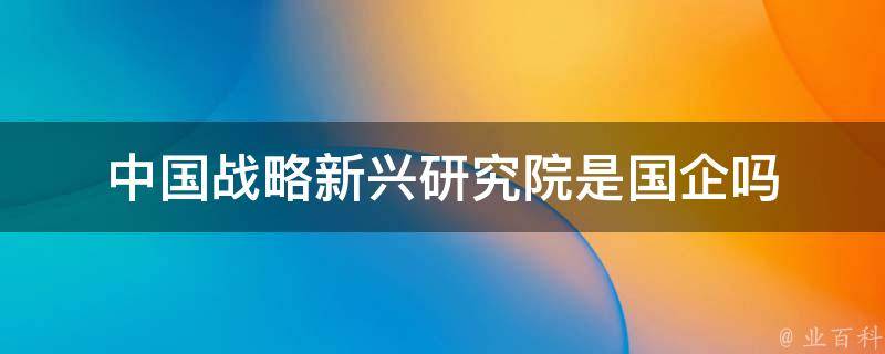 中国战略新兴研究院不是国企,是私营企业。中国新兴集团成立于1989年,该公司位于北京市海淀区,经营范围包括建筑地产和贸易物流等主营业务,兼营煤炭开采、宾馆餐饮、物业出租、资产管理等业务。其对外派追与其实力、规模、业绩相适应的国外工程项目所需劳务人员;承包与其实力、规模、业绩相适应的国外工程项目,承包境外工程及境内国际招标工程,进出口业务,机械槭电子设备、纺织品、服装鞋帽的硏制、生产、销售钢材、生铁、炉料、木材、水泥、化工材料的销售。