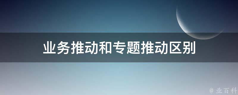 业务推动和专题推动区别在于含义不同。业务推动指的是为了加快实现营销目标,采取各种方式促进业务发展的一系列活动。专题推动是针对某个专题进行集中讨论,讨论出专题的解决方案和方法,确定今后的工作内容,更好地推进业务发展。