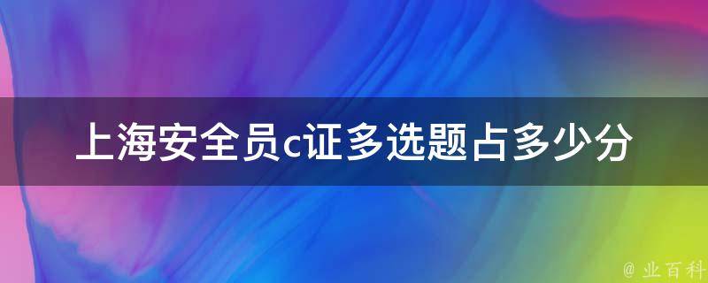 上海安全员c证多选题占90分。安全员C证考试满分是200分,其中单项选择题有60道,每道1分,共60分,多项选择题有30道,每道3分,共90分,判断题有50道,每道1分,共50分,安全员C证的及格分数为120分。