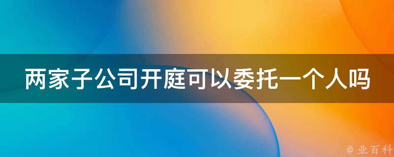 两家子公司开庭不可以委托一个人,需要分别委托不同的律师来代表各自的利益。这是因为每个公司都有自己的利益和法律权益需要维护,并且可能存在利益冲突。因此,在法庭上通常不会由同一个人代表两个子公司。在某些特定情况下,两个子公司可以选择共同委托一名律师来代表他们的利益,例如:合并的子公司、法律要求和审慎原则。