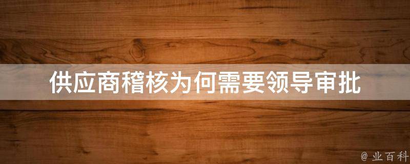 1、风险管理:供应商稽核是为了确保供应商符合公司的要求和标准,同时降低潜在的风险。在风险管理方面,领导审批可以提供高级别的审核和决策层面,确保供应商合规,并确保供应链的可靠性和稳定性。