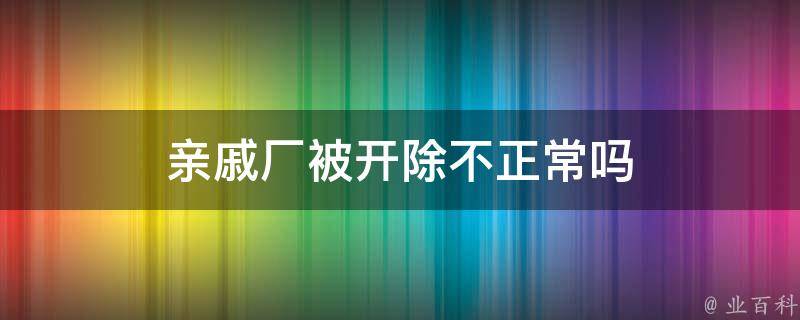 亲戚厂被开除正常。被开除是一种雇佣关系的终止,在特定情况下是正常的。在某些公司或组织中,雇佣亲属关系被视为违反道德原则、利益冲突或雇佣政策的行为,因此可能会被开除。避免裙带关系,可以确保公平竞争,消除权力滥用。