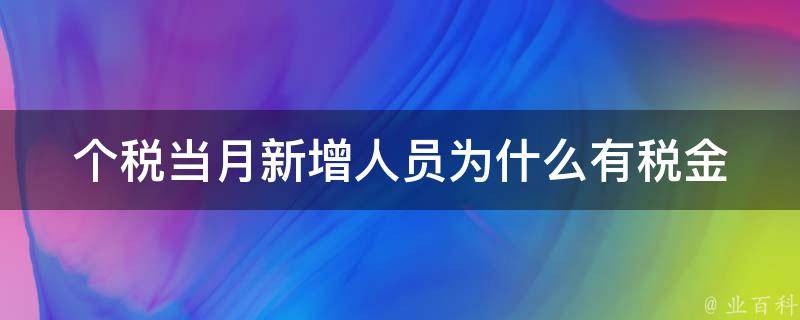 个税当月新增人员有税金是因为他们在当月获得了可征税的收入。个人所得税是根据个人的收入额进行计算和缴纳的一种税费。当一个人在某个月份的收入中,超过了个人所得税起征点(根据国家的法律法规而定),就需要根据税率表计算应缴纳的个人所得税额。
