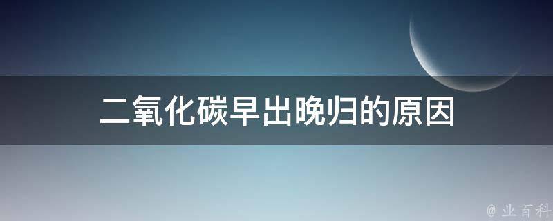 二氧化碳早出晚归的原因是二氧化碳的排放和吸收过程在自然界中有循环。植物通过光合作用吸收二氧化碳,将其转化为氧气并储存在植物体中。然后植物通过呼吸或分解过程中释放二氧化碳,使二氧化碳早出。此外,地球上的海洋也吸收和释放大量的二氧化碳。