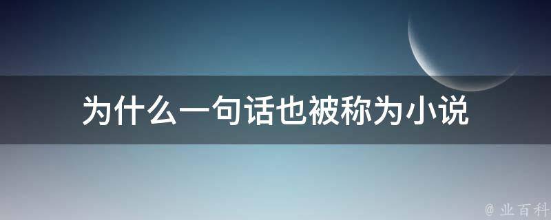 最佳答案一句话不被称为小说。小说是一种长篇虚构故事,通常包含复杂的情节和多个角色,它是一种完整的文学体裁,通过描绘人物的生活、冲突和发展来呈现故事。相比之下,一句话只是一个简短的表述或陈述,通常由一句完整的语句组成。它可能是一个观点、一个问题、一句名言或一个简明的描述。因此,一句话和...