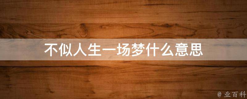 最佳答案不似人生一场梦是指某件事或某种经历与现实生活中的真实感受、现实困难或真实经历有所区别或相去甚远。这个表达意味着它与人们通常认为的现实生活是截然不同的,类似于一个虚幻或不真实的梦境。这个短语常用于对某种情况的评论,表示它超出了人们的预期或理解范围,或者与他们所习惯的真实生活经验...