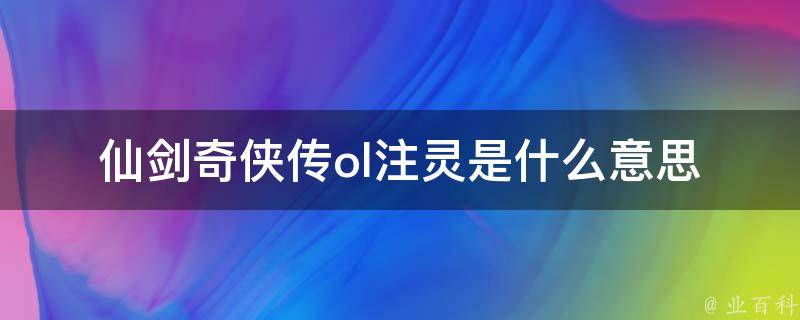 仙剑奇侠传ol注灵是什么意思
