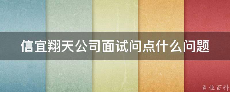 信宜翔天公司面试可能会问为什么对信宜翔天公司感兴趣,并说明对该公司及其业务的了解。或者询问在相关领域有哪些工作经验,以及在个人和职业发展方面有哪些目标和计划。这些问题旨在了解个人和专业背景、技能和经验以及与公司文化和职位的匹配程度。