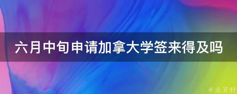 六月中旬申请加拿大学签来得及。去加拿大留学一年有3次机会,1月、5月、9月都会有开学,但是主要还是以9月开学为主,占总人数的80%。5月份至8月份是加拿大留学签证办理的高峰期。去加拿大留学需要提前准备,特别是签证方面,一定要及时办理。