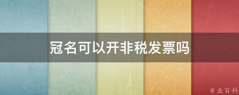冠名通常可以开非税发票。非税发票是指除增值税发票以外的其他发票类型,例如普通发票、服务费发票等。根据税务政策和规定,冠名费用通常属于企业的支出,可以作为成本进行报销,并开具相应的非税发票用于会计和税务目的。