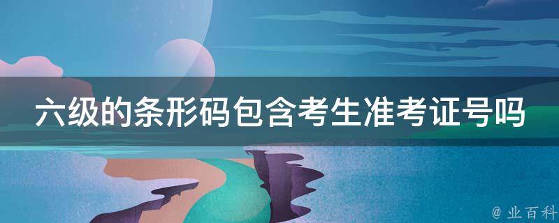 六级的条形不包含考生准考证号。英语六级考试中,考生的准考证号码通常不包含在考试条形码中。六级考试的准考证号码是由考试机构分配给每个考生的独特标识,用于识别考生身份和管理考试过程。考生参加英语六级考试时通常需要准备并携带有效的准考证件(例如身份证、学生证等)和准考证号码。准考证号码用于在考试过程中进行身份确认和管理,但它不会直接呈现在考试的条形码上。