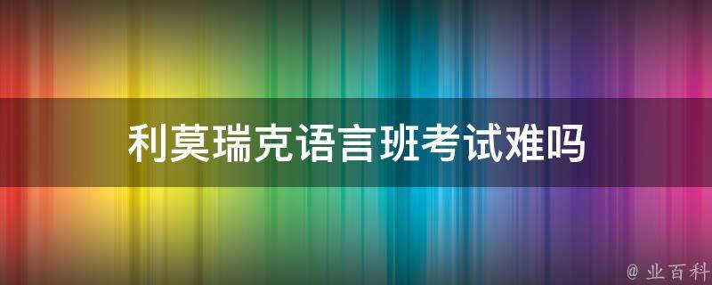 利莫瑞克语言班的考试难易程度会根据该语言班的要求、课程内容和目标而有所差异。一般来说,语言班的考试可以根据不同的级别或目标,分为初级、中级、高级或者其他分类。难易程度主要取决于学生对该语言的掌握程度、学习时间和投入程度等因素。有些人可能会觉得考试难度适中,而对于其他人来说可能会觉得有挑战。