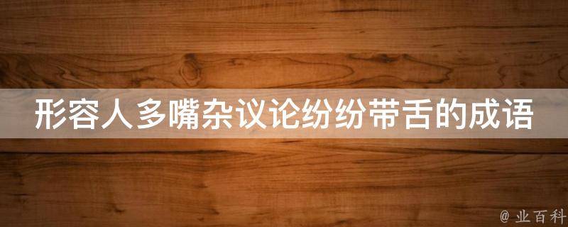 形容人多嘴杂议论纷纷带舌的成语有:七嘴八舌、饶舌调唇、嘴快舌长、舌灿莲花、多嘴多舌、巧舌如簧、舌战群儒等。七嘴八舌形容人多嘴杂,也形容饶舌、多嘴。饶舌调唇的意思是多嘴多舌、搬弄是非。嘴快舌长的意思是爱说长道短。多嘴多舌的意思是很多嘴、很多舌头,形容到处插嘴、搬弄是非。