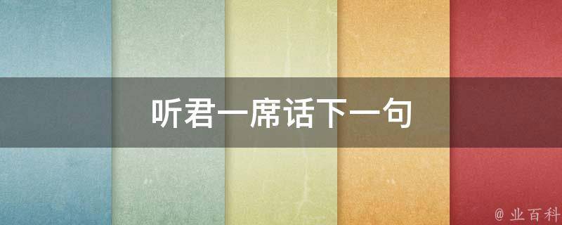 听君一席话下一句是:胜读十年书。这句话出自《增广贤文上集》,意思是:君(这里是个代名词,不是特指帝王)说了一句话,听到这句话的人感觉听了这句话要比读了十年书还有用。解释:与对方交谈的时间虽然很短,但是受益很大。