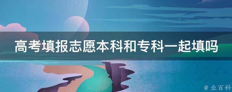 高考填报志愿本科和专科可以一起填。本科专科是能同时报考的,但是在录取时会先录取本科,如果本科没有被录取,才会录取专科;如果本科录取了,那么专科志愿就白填了,也没有人会看了。一般先填本科专业,等本科院校录取完成之后,再进行专科的填报。