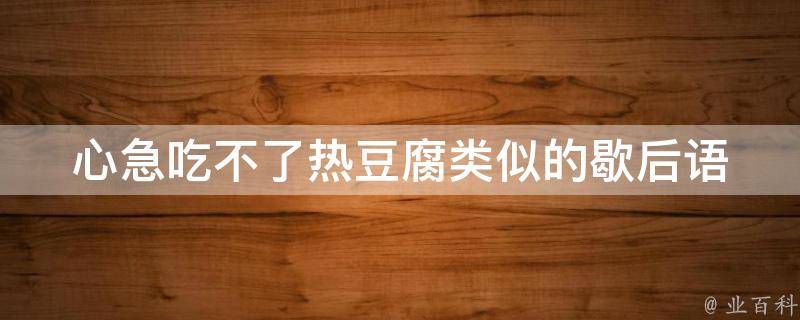心急吃不了热豆腐类似的歇后语有性急喝不得热稀饭,指一个性急的人通常无法等待和忍耐,他们希望立即满足自己的需求,但事物往往需要时间才能发展和成熟。这两个歇后语都强调了要保持冷静和耐心的重要性,提醒人们不要急躁,而应该以冷静、耐心和谨慎的态度去面对问题和挑战。