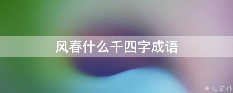 风春万千。这个成语的意思是指春风吹满大地,一切变换万千的景象。其中风指的是春风,春指的是春天,万表示无数,千表示千变万化。造句举例:在这个风春万千的季节里,花开成片、绿草如茵,美景令人陶醉。