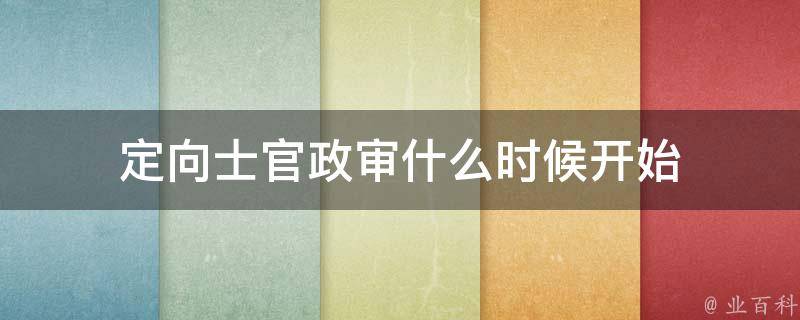 定向士官政审6-7月开始,官方网站会通知具体的时间。定向士官招生的年龄要求是不低于17周岁,不超过20周岁。要求无违法犯罪记录、思想表现优良、符合入伍条件,同时会在报考定向士官之后,安排政审的环节,一般来说和征兵入伍的政审条件是相同的。