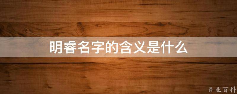 最佳答案明睿名字的含义是睿智、聪慧。明本义是日月交辉而大放光明,即《说文解字》所谓的“照也”,后延伸出照亮、点燃、公开的、天亮等含义。睿本义是深明、通达。《玉篇-目部》:“睿,智也,明也,圣也。”中山王鼎:“郾(燕)君子侩,叡弇夫?(悟)。”(燕君哙深明博识)《礼记-中庸》:“能为聪明...