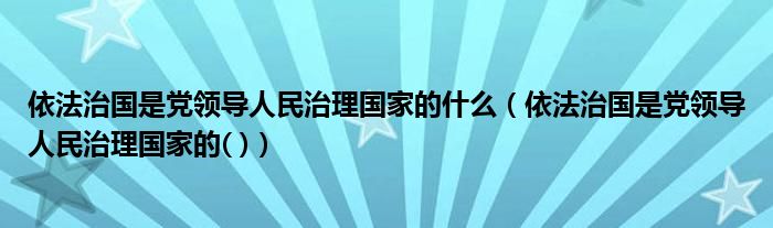 依法治国是党领导人民治理国家的什么(依法治国是党领导人民治理国家的( ))