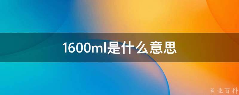 1600ml是指1600毫升。毫升是一个容积单位,跟立方厘米对应,容积单位的主单位是升(L)。1L=1000mL,1毫升=1立方厘米,1000毫升=1立方分米=1L。如果拿水来举例子的话,那么1600毫升的水是1600克。
