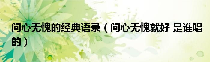 关于问心无愧的经典语录,问心无愧就好 是谁唱的这个很多人还不知道,今天菲菲来为大家解答以上的问题,现在让我们一起来看看吧!