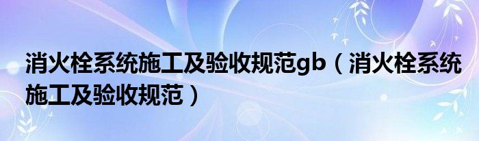 消火栓系统施工及验收规范gb(消火栓系统施工及验收规范)