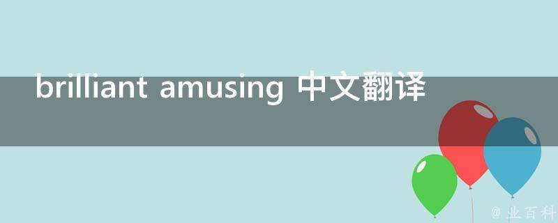 最佳答案brilliant amusing中文翻译为妙趣横生。brilliant是一个英语单词,形容词,作形容词时意思是灿烂的、闪耀的、杰出的、有才气的、精彩的、绝妙的。amusing,英语单词,主要用作形容词、动词,作形容词时译为有趣的、好玩的、引人发笑的,作动词时译为逗乐、打发。