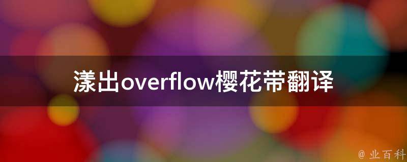 漾出overflow樱花带翻译为The overflowing cherry blossom belt。英语属于印欧语系日耳曼语族西日耳曼语支,最早被中世纪的英国使用,并因其广阔的殖民地而成为世界使用面积最广的语言。英国人的祖先盎格鲁部落是后来迁移到大不列颠岛地区的日耳曼部落之一,称为英格兰。