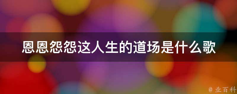 恩恩怨怨这人生的道场是歌曲《人生的道场》,由魏佳艺演唱。部分歌词是:恩恩怨怨这人生的道场,来来回回为名利而奔忙,多多少少怀念最初的模样,无奈人生有太多的荒唐,纷纷扰扰这人生的道场,反反复复为情字而思量,停停走走追忆美好的时光。