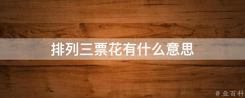 排列三票花是指排列三彩票上的号码排列方式。要看排列三票花,可以根据彩票中奖号码的排列方式进行分析,看其是否呈现出一定的规律性和趋势性。一般来说,可以通过分析历史中奖号码的排列方式、奇偶比例、大小比例等数据,了解彩票中奖号码的特点和规律,从而提高购彩的胜率。