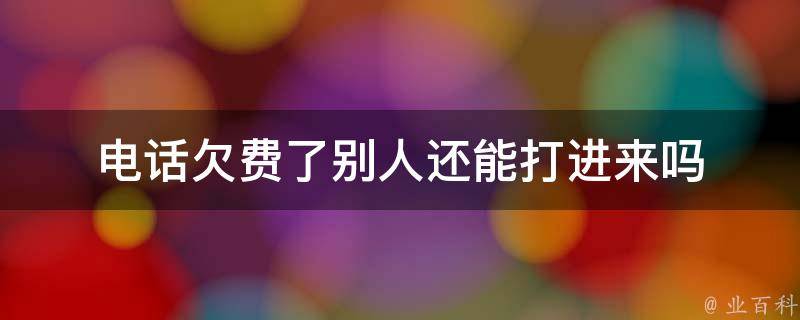 电话欠费了别人不一定能打进来,一般情况下手机欠费停机24小时内别人可以打通你的电话,但是有的地区是单停,在一定的时间之内是可以打进来的,但是超过了这个时间就不行了;有的地方是直接就停机了,那就不能打不进。