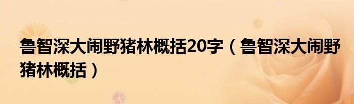 大家好,小联来为大家解答以上的问题。鲁智深大闹野猪林概括20字,鲁智深大闹野猪林概括这个很多人还不知道,现在让我们一起来看看吧!