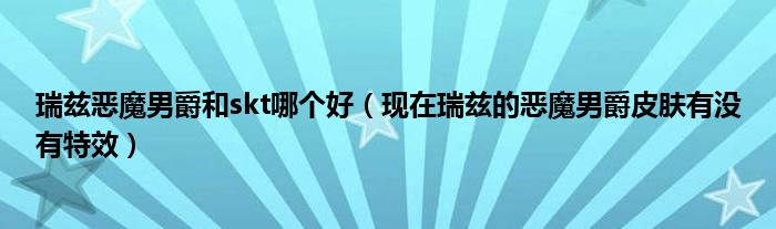 关于瑞兹恶魔男爵和skt哪个好,现在瑞兹的恶魔男爵皮肤有没有特效这个很多人还不知道,今天菲菲来为大家解答以上的问题,现在让我们一起来看看吧!