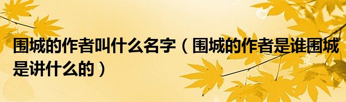 大家好,小夏来为大家讲解下。围城的作者叫什么名字,围城的作者是谁围城是讲什么的很多人还不知道,现在让我们一起来看看吧!