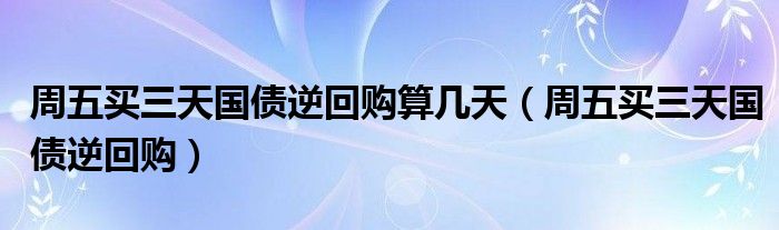 关于周五买三天国债逆回购算几天,周五买三天国债逆回购这个很多人还不知道,今天菲菲来为大家解答以上的问题,现在让我们一起来看看吧!