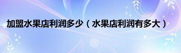 加盟水果店利润多少(水果店利润有多大)