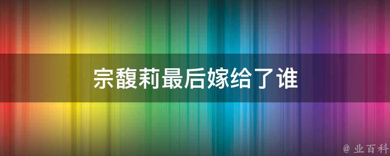宗馥莉没有嫁人,一直未婚。宗馥莉,女,汉族,生于1982年1月15日,2007年成立杭州宏胜饮料集团有限公司并出任总裁,宏胜饮料集团总裁、杭州娃哈哈集团公司董事长兼总经理宗庆后的女儿,现任全国工商联常委、浙江省工商联副主席、娃哈哈集团副董事长兼总经理。