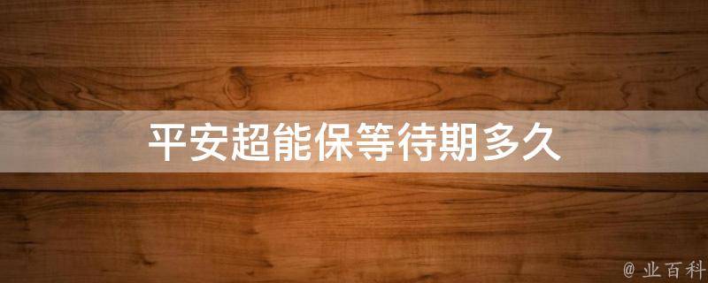 平安超能保等待期30天。平安超能保是一款住院医疗保险,投保年龄是18-60周岁,保障期限是1年,等待期是30天,免赔额是0元,这是一款典型的小额医疗险,无免赔,住院就能赔,分为了两个保障内容,赔付意外身故和意外残疾最高5万保额,大额住院费用最高20万,覆盖一般大病住院,同时赔付疾病和意外住院。
