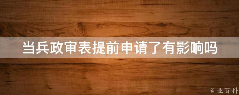 当兵政审表提前申请了没有影响,只要符合申请条件即可。征兵政审是军队对准备役人员的政治审查,包括是否反对四项基本原则、是否参与邪教组织及其它反对党派、是否私自离开部队、是否与现实表现与年龄相符等情况,如果都符合要求,才能被批准入伍。