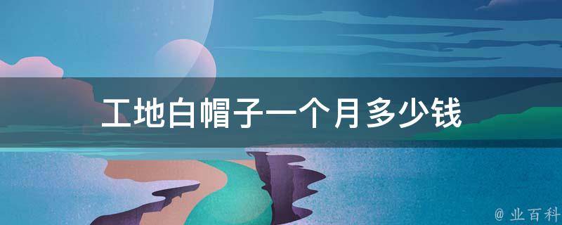 工地白帽子的人员工资水平因地区、职位和公司而异,平均在八千到一万左右,具体需要根据各地消费收入水平计算。工地上戴白帽子的一般是安全监督人员或高级技术人员,主要负责工地的计划实施以及工程质量。