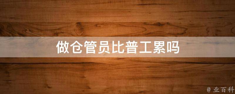 做仓管员没有普工累。普工是一线工人,主要从事体力劳动,每天都要完成公司安排的工作量,如果遇到任务紧的时候还要加班。而仓管是负责仓库的进出记录、备料等,不需要体力劳动,并且很少加班,工作相对轻松。