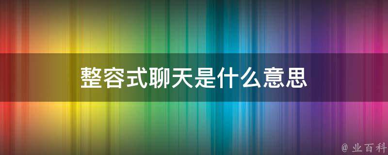 整容式聊天是指网友之间没见过面,但仅从聊天的过程中就把自己勾勒成一个很完美的对象,让你在内心对他进行一番大型美化。与他人聊天时,建议保持对对方话题的兴趣和热情,以及与对方分享自己的兴趣和爱好。