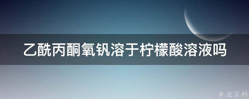 乙酰丙酮氧钒不溶于柠檬酸溶液。乙酰丙酮氧钒和柠檬酸都是有机化合物,它们在不同的溶剂中溶解度不同。乙酰丙酮氧钒是一种金属有机化合物,通常不溶于水,但可以溶于有机溶剂。柠檬酸是一种有机酸,具有较高的水溶性,但不溶于有机溶剂。