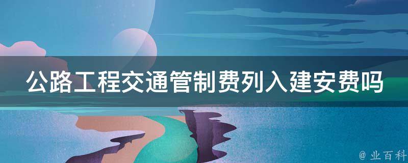 公路工程交通管制费不列入建安费。交通管制措施是为了保障工程顺利进行而采取的临时措施,与工程的建安费用无关。建安费是指建筑安装工程费,按照费用构成要素划分人工费、材料(包含工程设备,下同)费、施工机具使用费、企业管理费、利润、规费和税金。