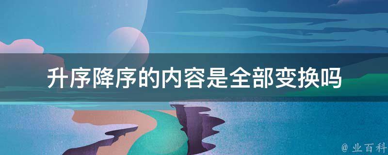 升序降序的内容不是全部变换,只是改变了顺序而已。升序和降序是指对数据的排序,升序就是数据排序从小排到大,降序就是数据从大到排到小。排序时区域的列数起关键作用。建立数据后,可以进行内容的排序修改,查起来更直观。
