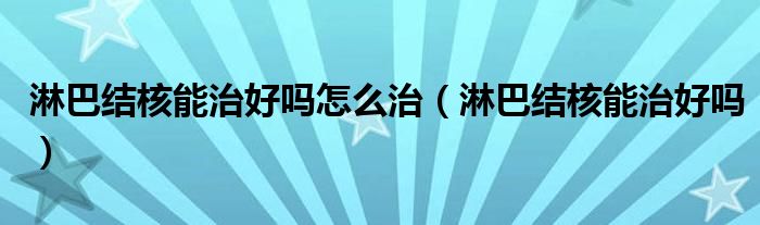 淋巴结核能治好吗怎么治(淋巴结核能治好吗)