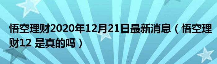 大家好,我是小科,我来为大家解答以上问题。悟空理财2020年12月21日最新消息,悟空理财12 是真的吗很多人还不知道,现在让我们一起来看看吧!