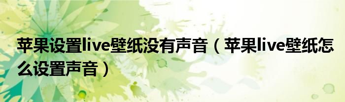 大家好,我是小科,我来为大家解答以上问题。苹果设置live壁纸没有声音,苹果live壁纸怎么设置声音很多人还不知道,现在让我们一起来看看吧!