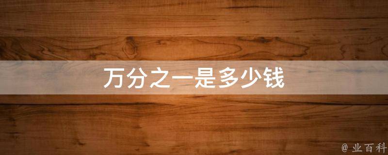 万分之一是1元。一万元的万分之一是1元,即:10000*1/10000=10000*0.0001=1元。万分之一,汉语词语,释义为可表示相对值很小,即占总体的比例很小,只有0.01%。亦可表示绝对值很小,即数值0.0001。